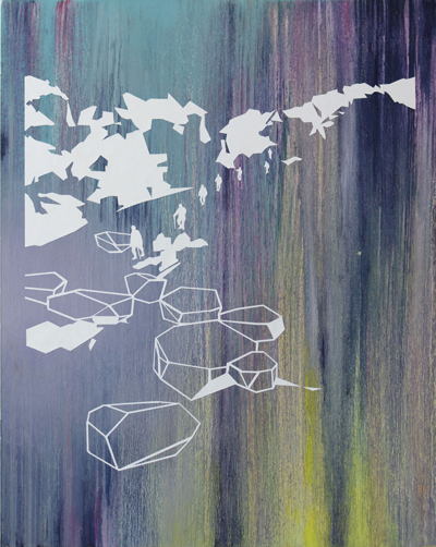 Die geometrisch-tektonischen Architekturen sind dabei stets durch die ausgesparte grundierte Leinwand gekennzeichnet, während wild wuchernde pflanzenartige oder landschaftliche Elemente häufig mit körperhaft- pastoser Farbe gezeigt werden.